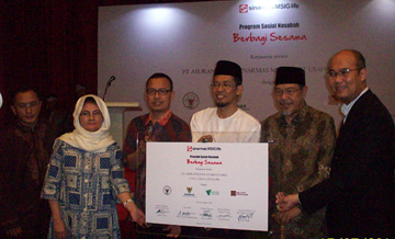 JAKARTA, BWI.or.id—PT Asuransi Jiwa Sinarmas MSIG bersama empat lembaga filantropi meluncurkan Program Sosial Nasabah Berbagi Sesama di Hotel Kartika Chandra, Jakarta, Selasa (15/7/2014) sore. Keempat lembaga itu adalah Badan Wakaf Indonesia (BWI), Badan Amil Zakat Nazional (Baznas), Dompet Dhuafa, dan Eka Tjipta Foundation.