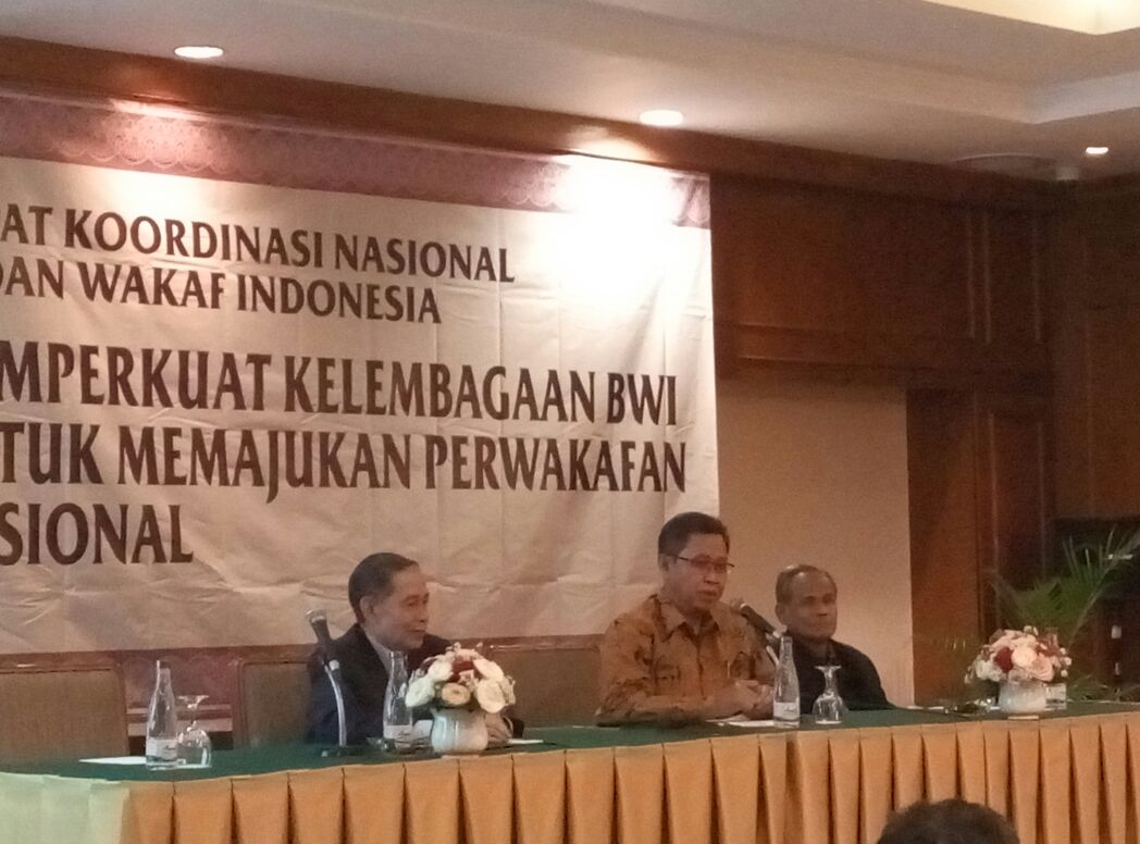 JAKARTA, BWI.or.id—Pelaksana Tugas Direktur Jenderal Bimbingan Masyarakat Islam Kementerian Agama, Profesor Abdul Djamil, membuka Rapat Koordinasi Nasional Badan Wakaf Indonesia hari ini (24/11/2016) di Hotel Sultan, Jakarta. Rakornas ini mengundang 33 BWI provinsi dan bertujuan mengevaluasi kinerja perwakilan BWI provinsi se-Indonesia dan mensinergikan program kerja perwakafan dalam ruang lingkup BWI.