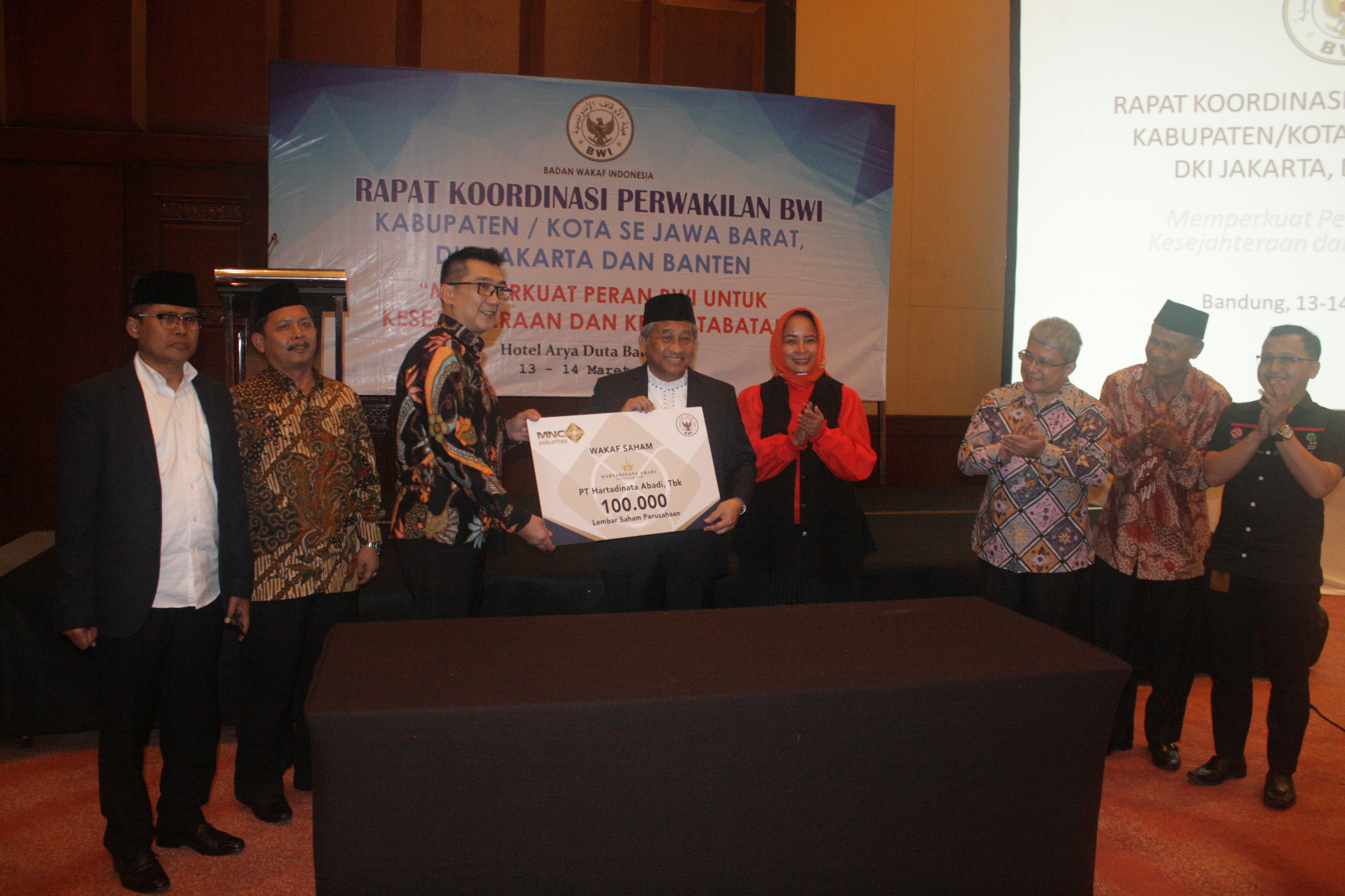 Dalam kesempatan tersebut, PT. Hardinata Abadi tbk, yang merupakan klien MNC Securitas menyerahkan 100.000 (seratus ribu) lembar sahamnya kepada pihak BWI sebagai wakaf produktif. Ketua BWI Muhammad Nuh, menilai hal ini sebagai langkah konkret MNC Securitas dalam kerjasamanya dengan BWI.