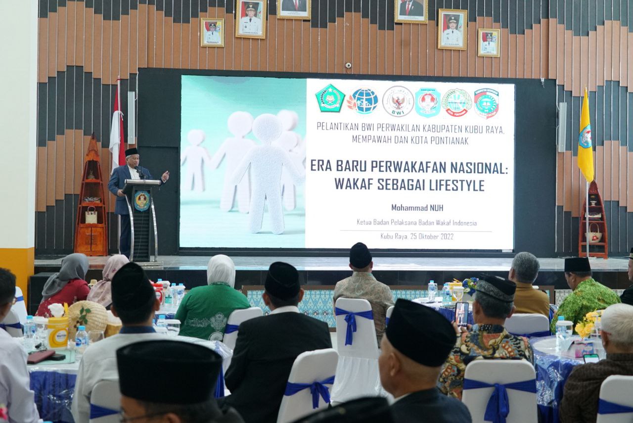 Materi Pelantikan Perwakilan BWI Pontianak, Mempawah, dan Kubu Raya, Selasa, 25 Oktober 2022, di Kantor Bupati Kubu Raya. Materi Prof. Dr. Ir. Mohammad Nuh, DEA, “Era Baru Perwakafan Nasional: Wakaf Sebagai Life Style”